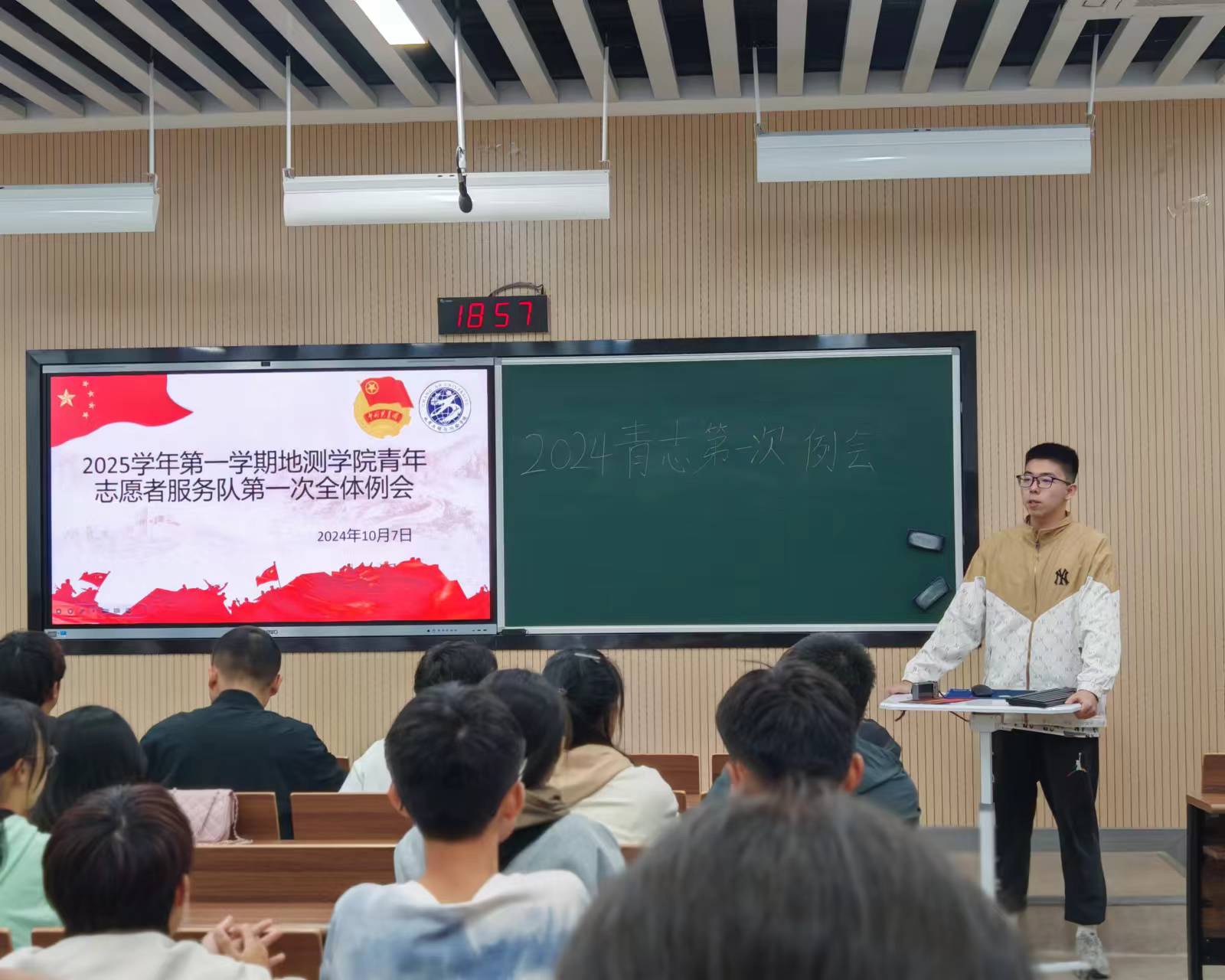 为加强组织建设,促进社团成员的沟通与合作,为后续工作开展做好准备,地测学院青年志愿者服务队(下称青志队)于2024年10月7日晚在WX2201召开2024—2025学年第一次例会。青志队指导老师杨海城以及全体成员参加本次例会。本次会议由张喆康主持。