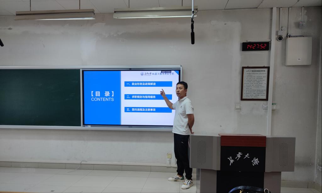 为全面推进学院2025届本科毕业生就业工作,进一步引导学生准确把握就业形势、增强就业信心、推动高质量就业,9月1日至9月5日,地测学院面向2021级本科生分专业、分场次地召开2025届本科毕业生就业动员会暨求职签约培训大会。本次会议由学院学生工作办公室主任段少帅、2021级辅导员杨海城、刘文星、王润涵主讲,学院全体2025届本科毕业生参加。