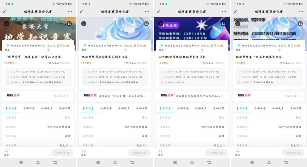 除此之外,地测科协在创新创业相关领域的活动宣传方面也做到了全方位、全阶段、全范围。对校内外的创新创业活动、科创赛事均有宣传,收集了来自校内各年级的创新创业计划,积极开展了专业介绍、赛事讲解、学科发展等活动;各种宣传贯穿各项活动、赛事所有阶段;宣传对象面向各年级同学。在这样的体系下,地测科协在宣传方面取得了显著的成效。