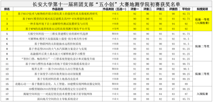 为激发学生发明创造意识,提高学生团队协作能力,培养学生创新创业精神,营造浓厚的校园科创氛围,在304永利集团官网入口第十一届班团支部“五小创”大赛中地测学院共有18支队伍参赛,有4支队伍进入校级复赛,斩获校级二等奖2支,校级优胜奖2支,复赛团队获奖率达100%