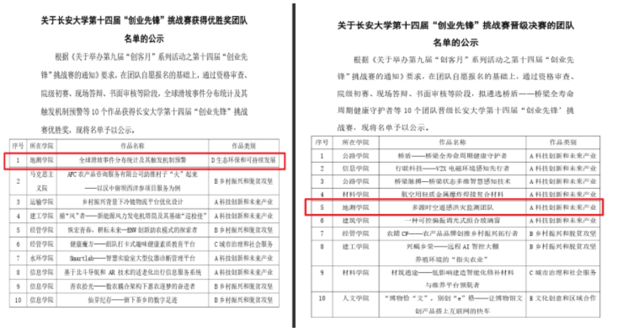 “创挑赛”答辩现场地测学院参赛团队获奖统计