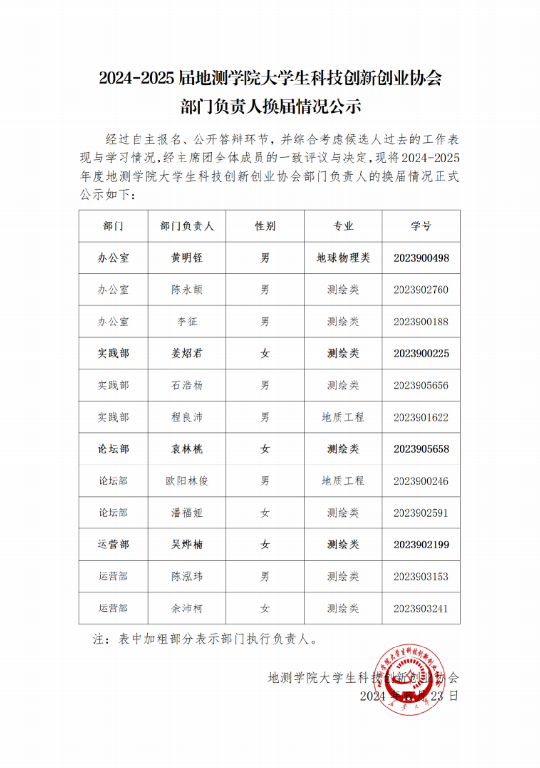 地测科协坚持自主自愿、守正创新、稳中求进的社团换届工作,不断落实“提高学生科技创新能力、引领学生自主创业潮流、全面提高学生综合素质”的宗旨,并通过综合考量候选人过去工作表现与学习情况选拔新一届学生干部,确保社团工作有效衔接和传承,进而不断营造浓厚的科技创新与创业校园氛围。