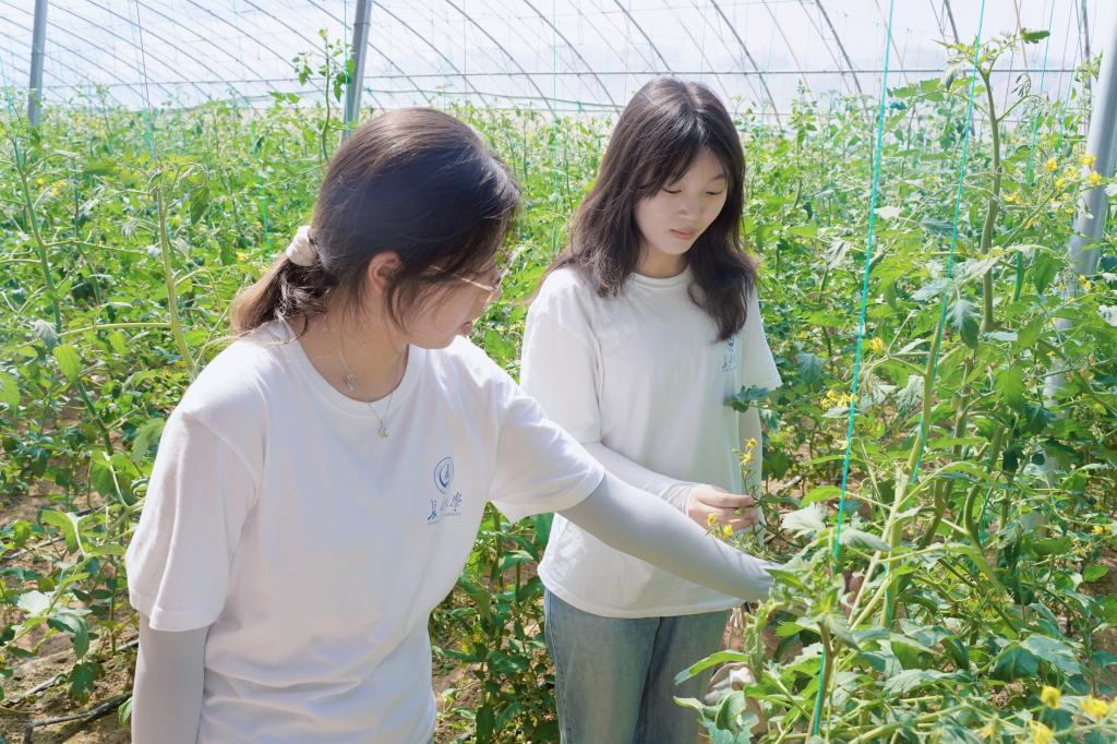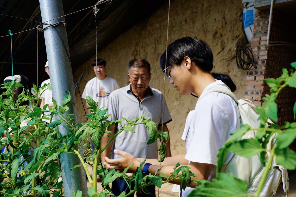随后,实践队员们前往柴登村温室大棚进行实地调研。柴登村股份经济合作社现有高标准温室大棚四十余栋,致力于推动农业设施向标准化、规模化发展。队员们了解到,大棚以黄土夯实确保种植区域的恒温,同时根据农业科学规律开展轮种和休耕,从而保证土壤肥力和作物收益。如今,柴登村成功打造了柿子、黄瓜、香瓜等“核心”品牌果蔬,逐步占领地区市场。实践队员深感现代农业为村民开辟了崭新的致富途径,谱写了乡村振兴战略的华彩新篇章。