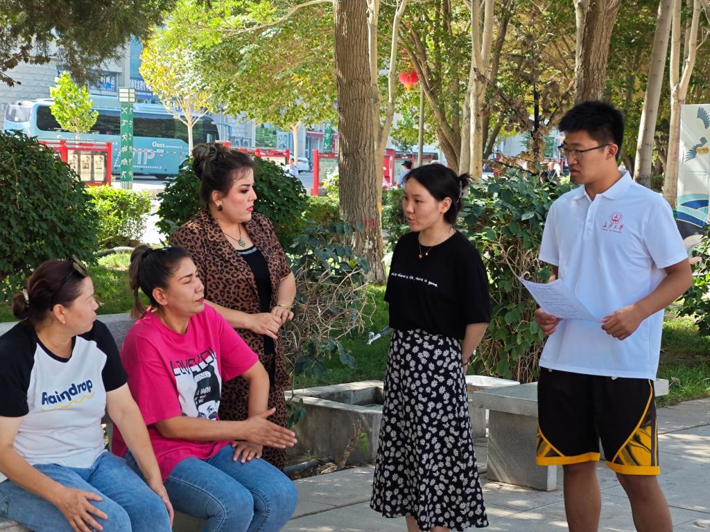 为深入学习贯彻习近平新时代中国特色社会主义思想和党的二十大精神,体悟我国民族区域自治制度的显著优势,感悟焉耆回族自治县成立70周年以来各族人民齐心协力、拼搏奋进的壮丽史诗,在文化交流互鉴中铸牢中华民族共同体意识,2024年7月26日,304永利集团官网入口赴新疆焉耆“青春支教展青年风采·携手共进铸民族之谱”暑期社会实践队前往焉耆县人民文化广场进行采访调研。