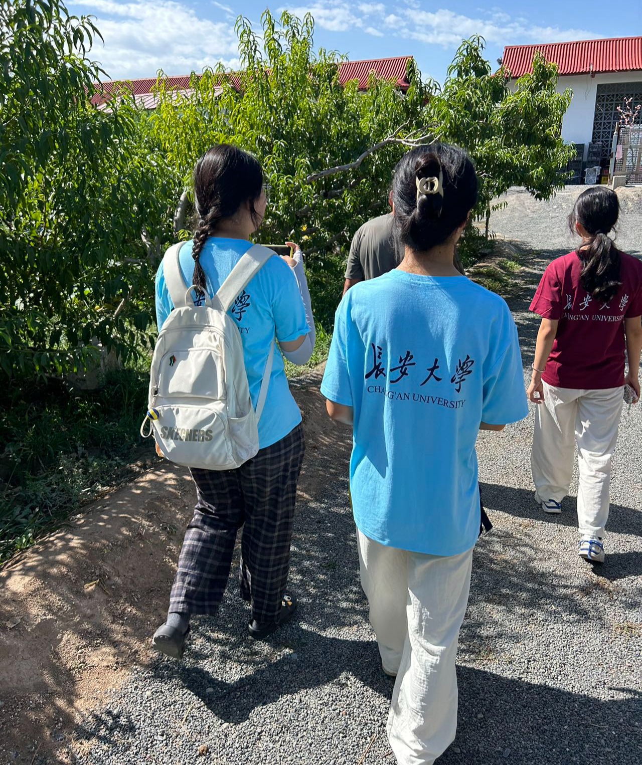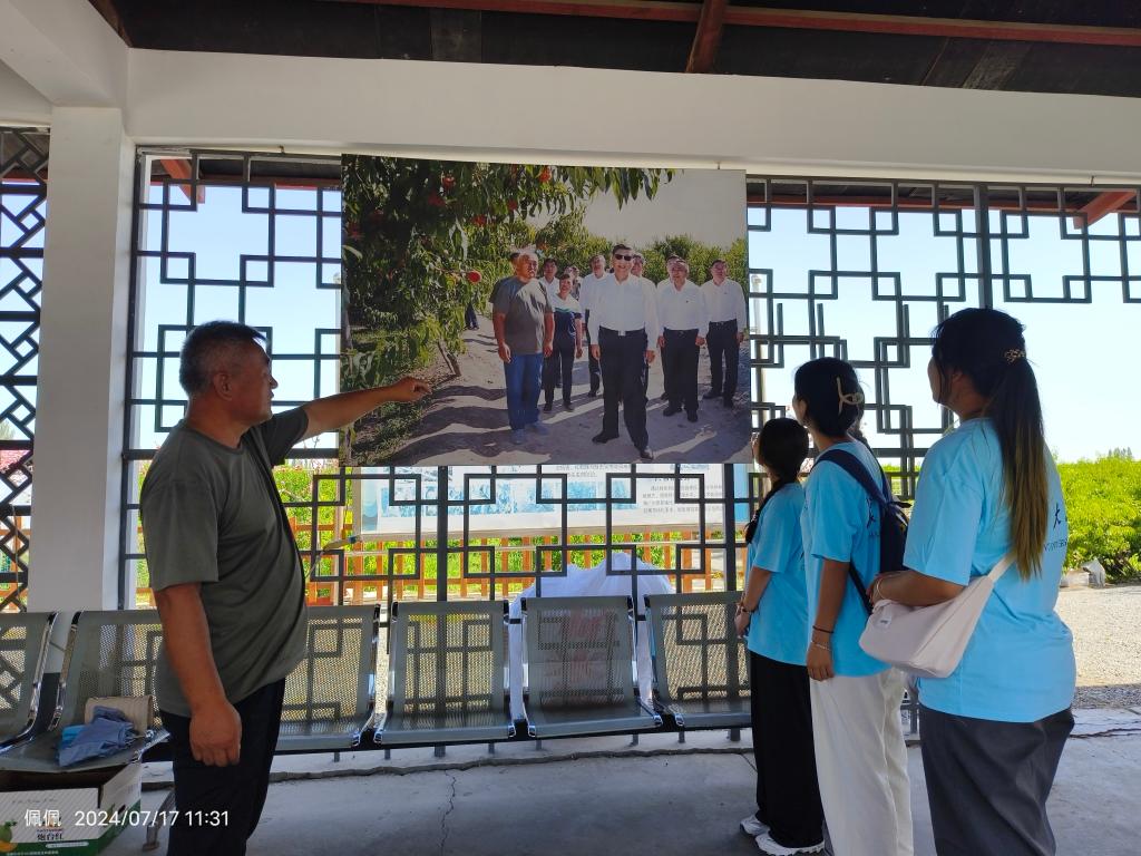 2022年7月,习近平总书记来新疆考察调研时,曾亲自深入143团蟠桃种植基地农户果园,了解蟠桃产业发展情况。沿着总书记调研的足迹,实践队员们来到了当年总书记到访的桃园,参观了桃园内部,由果农介绍了蟠桃的种植、养护、培育等知识,使队员们对蟠桃产业的发展有了深入的了解。