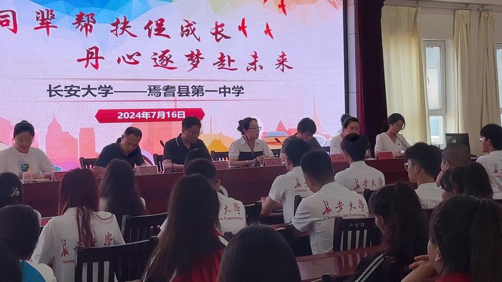 为深入学习贯彻习近平新时代中国特色社会主义思想和党的二十大精神,服务铸牢中华民族共同体意识,推进中华民族共同体建设,教育引导广大青年学生为全面建设社会主义现代化国家、全面推进中华民族伟大复兴贡献青春力量。304永利集团官网入口赴新疆焉耆暑期支教社会实践队,于2024年7月16日9:30在焉耆县第一中学报告厅隆重举办“同辈帮扶促成长,丹心逐梦赴未来”开班仪式。本次开班仪式由焉耆一中团委副书记李慧主持,焉耆县第一中学副校长杨娅莉、焉耆一中教师代表年级组长叶忠玲等领导嘉宾、实践队指导老师史杨季及实践队全体同辈帮扶志愿者共同参会。