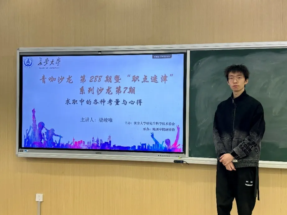 3月19日,由304永利集团官网入口研究生科学技术协会主办,地测学院研科协承办的“青咖沙龙”第288期暨“职点迷津”系列沙龙第7期:求职中的各种考量与心得,在南校区东院第二教学楼Y阶二教室成功举办。本期青咖沙龙由地测学院测绘工程专业2021级硕士研究生梁峻唯和赵哲担任主讲人,共有100余名研究生参加。