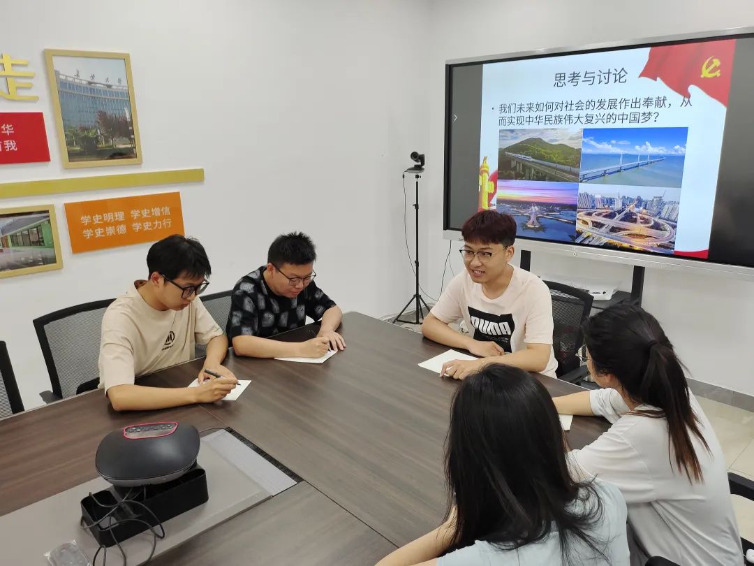 最后小组成员针对“我们未来如何对社会的发展做出贡献,从而实现中华民族伟大复兴的中国梦?”一起讨论。其中郭晋彤同学表示“我们作为一名大学生,是社会未来的顶梁柱,实现中华民族伟大复兴的中国梦正是要靠我们这一代人不懈奋斗、笃行不怠,才能实现。通过现在的努力学习,掌握足够多的工作技能,在将来参加工作之后用自己的真才实学为社会主义现代化建设添砖加瓦。”活动结束后,小组同学总结本次活动分享心得感悟。