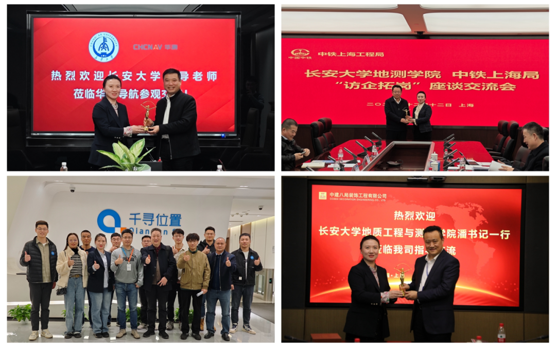 此次访企拓岗促就业专项行动由地测学院党委副书记潘迎带队,安全工程系副主任李凯玲副教授、测绘科学系刘万林副教授、学生工作办公室主任段少帅以及辅导员杨东民参加。一行先后走访千寻位置网络有限公司、中科院上海天文台、上海易罗信息科技有限公司、中铁上海工程局集团有限公司、中建科工集团有限公司上海工业智能中心项目部、华测导航技术股份有限公司、中建八局装饰工程有限公司等多家行业相关单位。