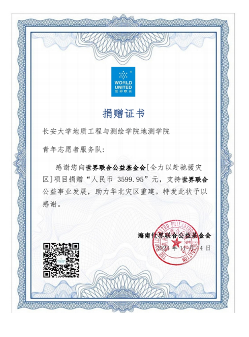 洪水无情,人亦有情,长大学子的善举和贡献为华北的重建贡献了长大力量。在以后得日子里,地测青志队更会继续以“完善自我,帮助他人,奉献社会,弘扬新风”为宗旨,为更多需要帮助的人们提供援助,持续投身于公益事业的发展。