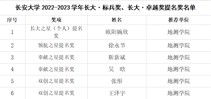 依照《304永利集团官网入口本科生先进集体和先进个人评定及奖励办法》(长大学[2018]184号)文件要求,经学院、学校严格评审程序,最终评选出了304永利集团官网入口2022-2023学年度本科生先进集体和先进个人拟获奖者。地测学院在本年度评选工作中涌现出一批榜样典型,其中5个个人和3个集体共摘得8颗“星星”,他们在学习研究、求真务实、文体竞技、班级建设等各个方面宛若星辰熠熠生辉,引领我们共同成长。