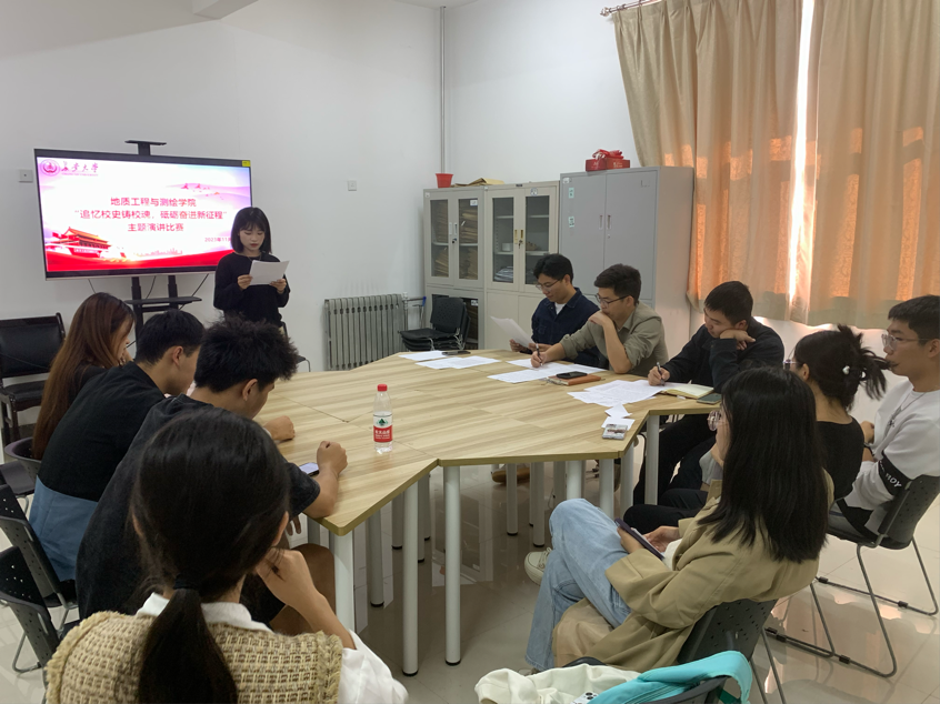 为引导2023级本科新生充分了解校史校情,激发学生们的爱国荣校情怀,立志做有理想、敢担当、能吃苦、肯奋斗的新时代好青年,地测学院于11月2日在17号楼学生活动室举办“追忆校史铸校魂,砥砺奋进新征程”主题演讲比赛预赛,学院2023级辅导员杨东民、侯梦阳、史杨季老师及学生干部代表担任评委,比赛由史杨季老师主持。