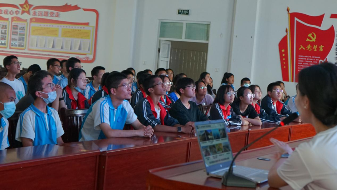 在奋斗事迹分享环节,实践队员们诚挚恳切的总结分享了学习方法和经验:梁瑞航以高中波折的学习经历为引,鼓励同学们要在跌倒后及时爬起来;侯晓庆以“勇气”、“坚持”为关键词,希望同学们具备良好的学习态度;来自新疆的维吾尔族学生帕丽扎提·亚生江分享了她美好的大学生活,希望各民族学生能像石榴籽一样紧紧抱在一起团结共进;同样来自新疆的队员王博分享了自己从一名体育特长生转变为文化生的励志奋斗历程,以此告诉同学们“当下”就是改变自己最好的时刻,努力在任何时候都不算晚。