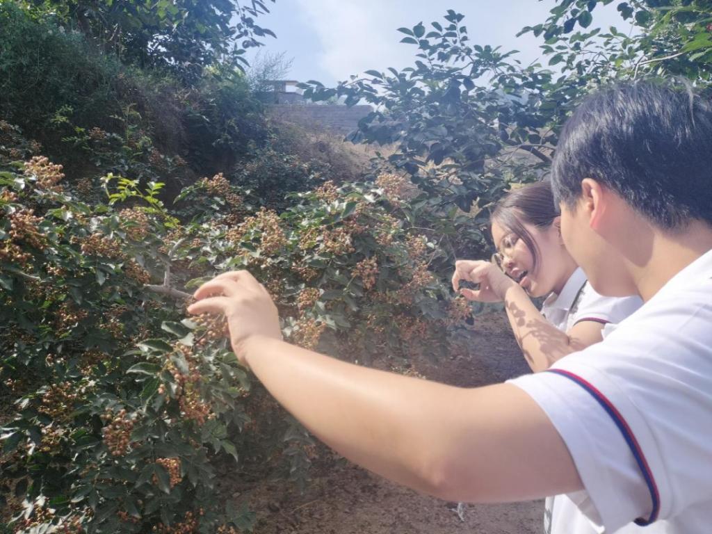 图为实践队学习花椒养护知识