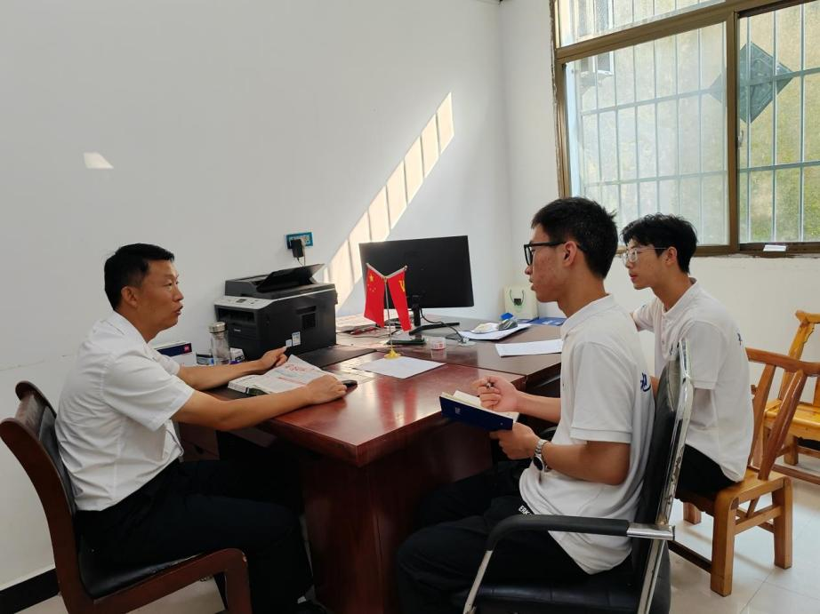上午11时,实践队员们前往到78岁老党员王铁树同志的家中进行采访。他加入中国共产党已有53个年头。年轻时是奋战在村里一线的党员干部,为二郎庙村奉献了整个青春。谈到近年来村子各方面的发展,王铁术同志感慨道,在乡村振兴战略的推动下,村子的教育质量不断提升,交通设施日渐完善,住房条件也得到了明显改善。在访谈的过程中,王铁术同志的身上无时无刻不绽放着党员的思想觉悟之光。最后王铁术同志对实践队员们寄予厚望,希望同学们努力学习、接续奋斗,为全面建设社会主义现代化国家新征程贡献力量。
