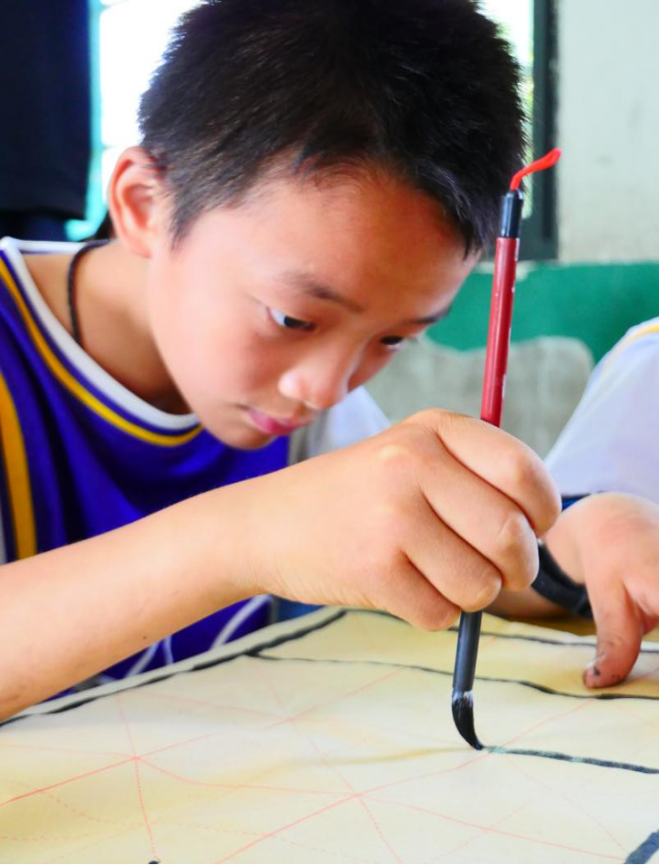 上午第一节课,低年级进行语文课程母语的讲授,高年级同学进行软笔书法学习课程。团队选课以中华优秀传统文化为出发点,从童年时期培养孩子们的文化意识,学习国粹经典。在练习软笔书法过程中,孩子们认真的表情,一笔一划书写着华夏民族几千年的语言文明。与此,语文课课堂同学们积极踊跃,细心朗读每一个汉字,每一个词语。相信定能为孩子们心中埋下一颗发扬祖国优秀传统文化的种子,将来投身祖国建设中去。