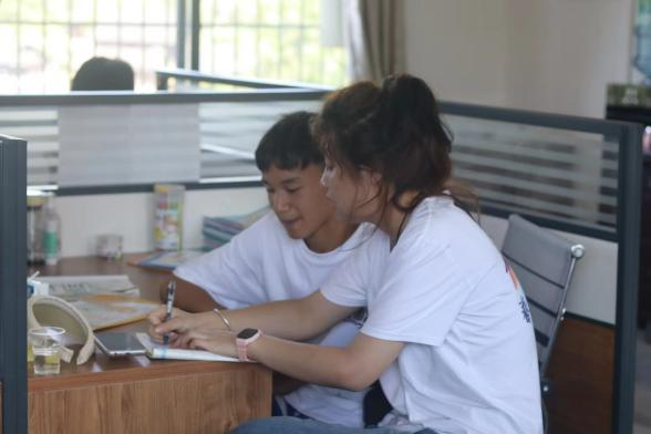 除此之外,304永利集团官网入口筑梦黔行队为南江村初、高中生公益性辅导相关课程,鼓励山村孩子前来自习,使用“随叫随到、随问随答”的体系助力每一个山村青少年追逐自己的梦想。在辅导过程中,团队队员认真解答每一道题目,选择易理解、最简便的方法进行讲解,在同学们的反馈声中一致称赞。
