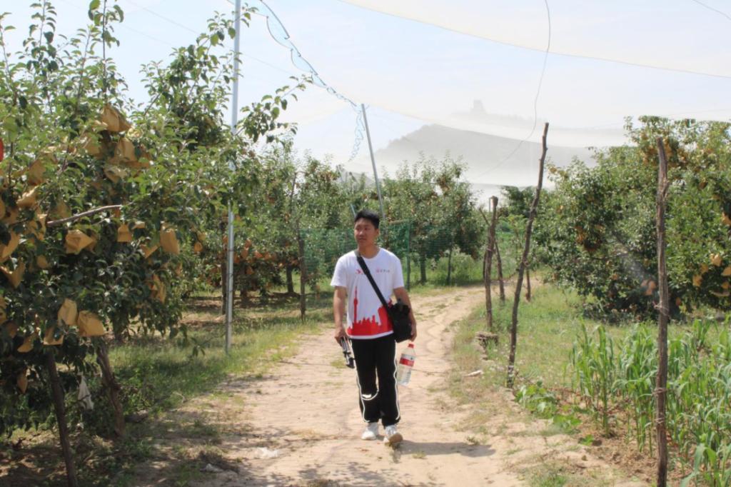 丁光盛、郑斌、吕泽坤三位实践队员从高西沟村游客中心出发,沿着习近平总书记的考察之路来到龙头山,道路两旁是大片大片的玉米田及果园,山地苹果长势喜人。龙头山顶景色秀美,环顾四周的绿水青山,实践队员们纷纷表示这里不愧是“陕北高原的明珠”,高西沟人民能将自然灾害频发的黄土高原治理成如今山清水秀的“陕北好江南”,艰苦奋斗的精神值得我们学习。