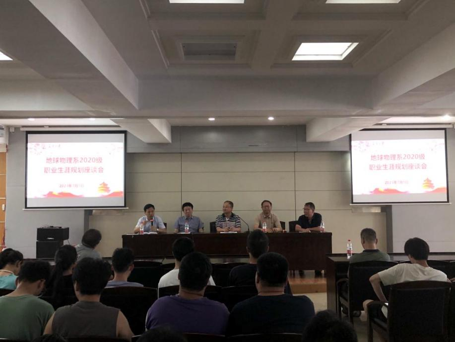 下午,地测学院副院长邵广周、冯宏研究员,郭文波研究员,杜中东高级工程师、地球物理系主任包乾宗与地球物理系实习学生开展职业生涯座谈会。会上,三位不同领域的专家结合自身求学和工作经历进行了主题分享,并重点针对行业发展、就业选择、知识积淀和技能锤炼等方面发表了自己的看法和见解,均嘱咐在座学生不论选择何种发展方向,都需要重视专业基础和思维的培养,不断为成功与发展累积经验。随后,部分学生就考研就业困惑、就业行业地区选择和专业未来发展进行了一对一提问与交流,与会专家和老师都进行了回复与指导。