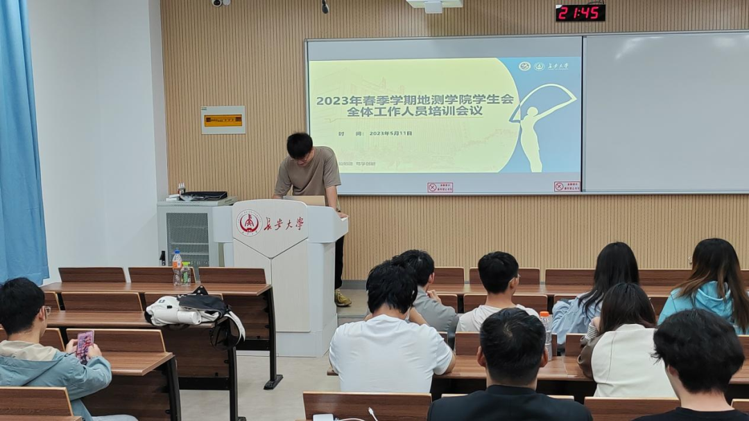 为深入学习党的二十大精神,进一步深化深化学生会改革,加强永利集团官网学生会建设,充分发挥学生会服务同学成长成才的职能,地测学院学生会于5月11日晚在学校修远教学楼2205组织开展了304永利集团官网入口学生会全体工作人员春季培训会,并于5月13日晚组织了线上视频材料学习,会议由学生会执行主席石钰主持,地测学院团委书记苗行生出席,地测学院学生会全体工作人员参与。