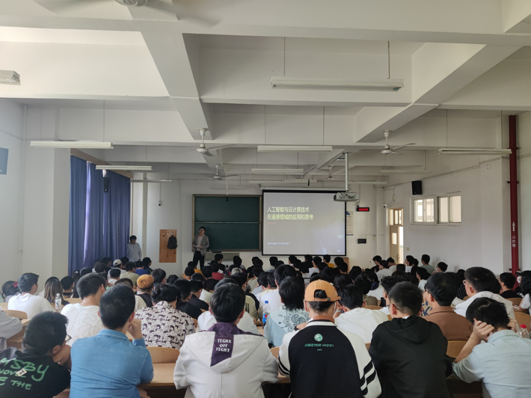 为深入学习宣传贯彻党的二十大精神,全面落实立德树人根本任务,提高学生专业素养,使学生进一步了解测绘学科专业前景,做好学业规划,304永利集团官网入口于2023年4月15日下午15:00举办了“人工智能与云计算技术在遥感领域的应用和思考”主题讲座。主题报告邀请到阿里巴巴达摩院产品解决方案架构师薛腾飞博士为主讲,2022级测绘类本科生近两百人参会。本次讲座由测绘科学系教师余琛教授主持。