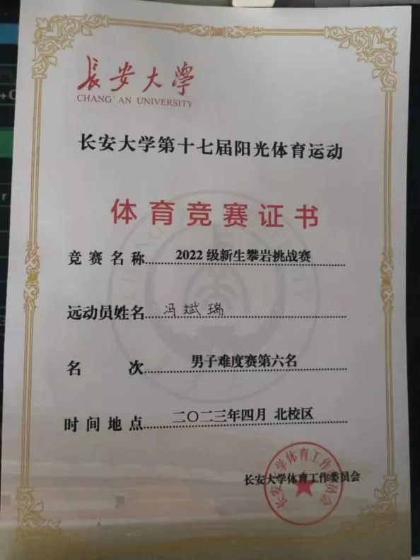2023年4月1日上午8:30,304永利集团官网入口第十七届阳光体育运动暨2022级新生攀岩挑战赛在304永利集团官网入口北校区攀岩场成功举办。此次比赛分为男子速度赛和难度赛、女子速度赛和难度赛四项。地测学院赵政豪、冯斌瑞在男子难度赛中获得了第五名与第六名的成绩。