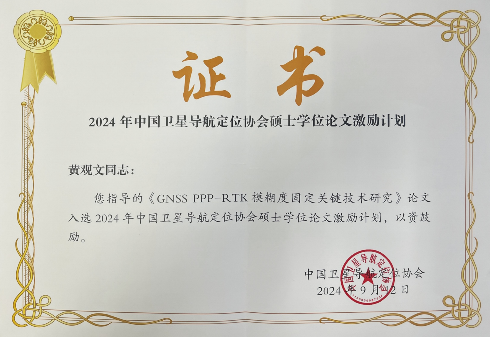 喜报丨我校黄观文教授指导论文入选2024年度中国卫星导航定位协会论文激励计划