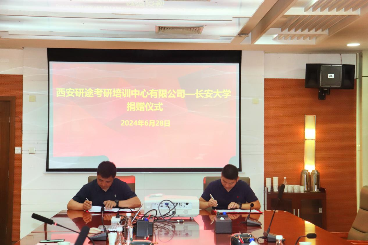 本次捐赠仪式中,西安研途考研培训中心有限公司向地测学院捐赠10万元,用于激励地测学院家庭经济困难学生勤奋学习、努力进取,帮助他们顺利完成学业。双方签署了2024年至2026年《捐赠协议书》。