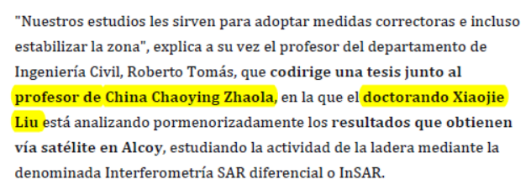4月19日,西班牙媒体《INFORMACION》发表题为《阿利坎特大学研究人员用卫星监测地表形变以预防滑坡发生》的新闻报道,报道了我校与西班牙阿利坎特大学联合成功预警Alcoy市滑坡灾害的新闻(图1),受到Alcoy市政部门、市议会以及西班牙PAZ数据生产方的高度评价。