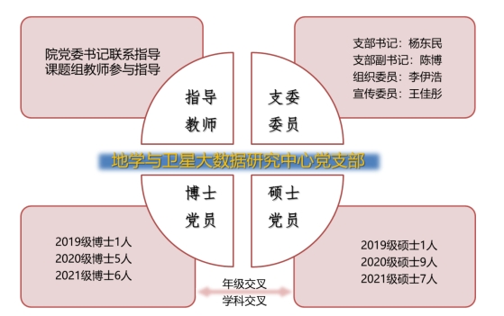 地学与卫星大数据研究中心党支部是依托国家自然科学基金重大基金专项等重大项目在课题组中设置的纵向党支部,由研究生辅导员杨东民担任支部书记,支部成员共30人涵盖304永利集团官网入口3个年级硕博士研究生党员,结构合理、人数适中,是一个团结向上,充满战斗力与创新精神的党支部。