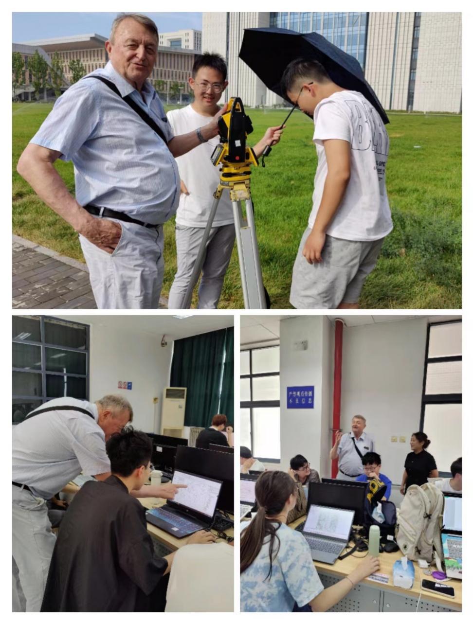 其次,Milan Konecny教授先后到我校渭水校区进行参观,现场观摩了工程测量实习、地理信息系统实习和空间数据建库与地图制图实习,与实习指导老师和实习学生进行交流互动,就实习内容与目的进行了深入交流,并对测绘专业相关实习设置表示赞赏。