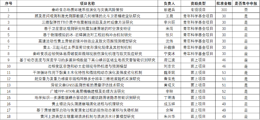 近日,国家自然科学基金委公布了2023年度国家自然科学基金项目评审结果。在学院教职工的共同努力下,永利集团官网2023年度国家自然科学基金项目共获批18项,彭建兵院士获批重点专项项目1项,集中获批面上项目10项,青年基金项目7项,资助项目经费总额1007万元。