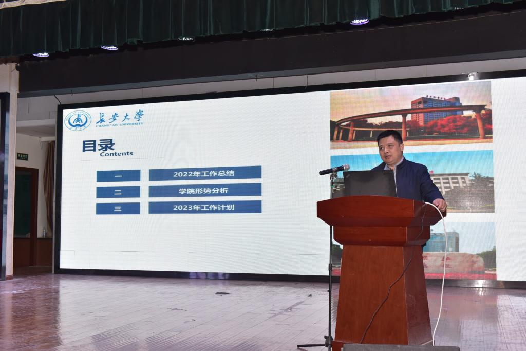 院长李振洪代表学院领导班子述职,他对学院2022年度在党建工作、师资队伍、学科建设、平台建设、科学研究、人才培养、国际化、学生工作等方面进行了全面总结,梳理了发展中存在的突出问题,对2023年的重点工作进行了安排部署,他希望全院教职工凝心聚气,乘势而上,做到主动作为、科学谋划、强化落实、追求实效,努力打造学科优势突出、专业特色鲜明的高水平学院。班子成员结合各自分管的工作依次进行个人述职。党委书记戴宏通报了学院2022年度民主生活会召开情况。最后,全体参会人员对处级领导班子和领导干部进行了民主测评。