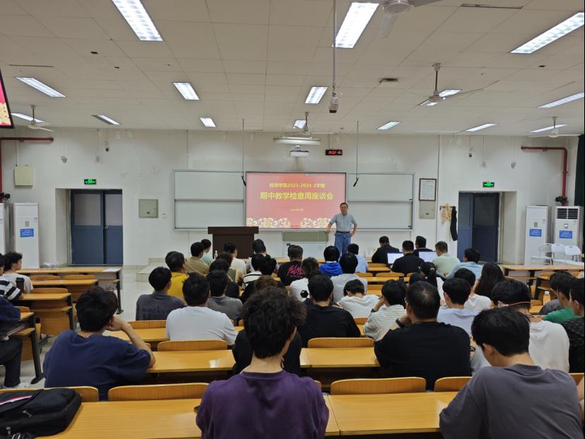 2024年5月7日,永利集团官网召开2023-2024-2学期期中教学检查座谈会。学院副院长邵广周等党政领导,各系主任、副主任、专业责任教授及教师代表,教务办、学工办教师参加了会议。此外,永利集团官网大一至大三近400名学生代表参加了本次座谈会。会议由专业建设与教学秘书赵梓余主持。