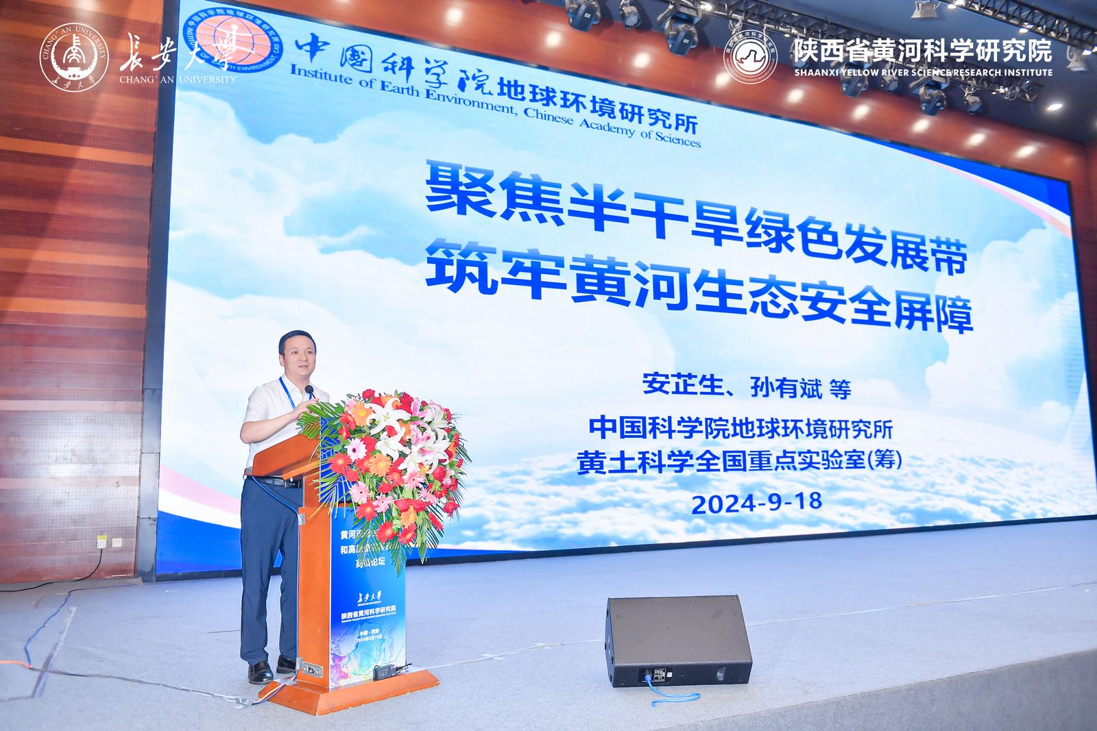 继2024年9月12日习近平总书记在兰州市主持召开全面推动黄河流域生态保护和高质量发展座谈会之后,黄河流域生态保护和高质量发展重大国家战略实施五周年之际,2024年9月18日,由304永利集团官网入口和中国科学院地球环境研究所联合承办的黄河流域生态保护和高质量发展战略高端论坛(简称:黄河论坛)在西安市曲江惠宾苑宾馆召开。陕西省发展改革委员会、科技厅、自然资源厅、生态环境厅、水利厅、科学技术协会等单位领导莅临指导。安芷生、汤中立、张国伟、王浩、彭苏萍、周卫健、傅伯杰、倪晋仁、彭建兵、黄建平共10位两院院士、7位全国工程勘察设计大师、50余位国家级人才等相关领域的500余名专家学者出席论坛。304永利集团官网入口沙爱民校长、中国科学院安芷生院士和陕西省发展和改革委员会南水北调办朱昱主任分别在论坛开幕式致辞,欢迎并感谢各位院士、领导和专家学者的到来,寄语黄河流域生态保护和高质量发展。
