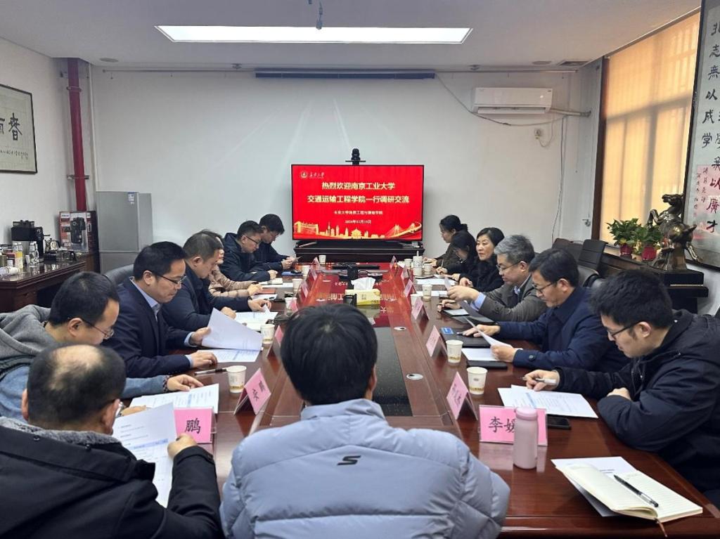 2024年12月10日下午,南京工业大学交通运输工程学院党委书记许翠梅、院长周峰、副院长吴志坚及地质工程系、实验管理中心相关负责人来院调研,304永利集团官网入口党委书记王树莹,党委副书记、副院长欧阳韬,副院长申艳军及地质工程系、实验中心相关负责人参与调研。申艳军副院长主持调研交流会。