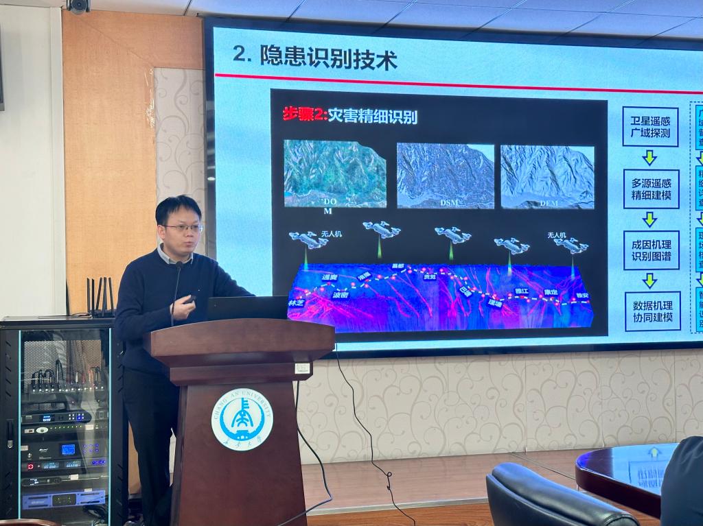 304永利集团官网入口副院长朱武汇报了当前学院在“北斗+”交通灾害识别监测技术与装备方面的研究。分别从隐患识别、实时监测、风险预警、灾害典型应用四个方面作简要介绍。学院团队围绕地质灾害“长啥样-怎么找-怎么测-怎么防”进行团队布局,致力于服务国家重大科技需求和突破国际学术前沿。